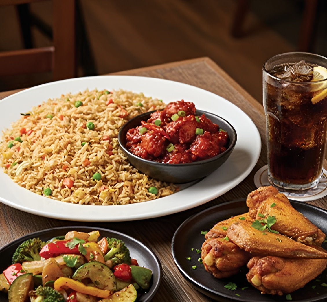 Fried Rice, Chili Chicken,Vegetable, wings & Soda